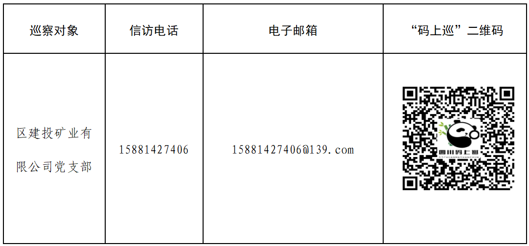 據悉,區委第三巡察組將進駐區建投礦業有限公司開展為期30天的巡察監督。巡察期間(5月13日—6月13日)設專門信訪電話:15881427406,電子郵箱:15881427406@139.com,并在區建投礦業有限公司正門保安處(安州區花荄鎮大北街074號)、區建投礦業有限公司一樓子公司辦公點(安州區花荄鎮大東街005號)設置了征求意見箱,同步發布四川“碼上巡”二維碼,并設有信訪接待點(受理群眾來訪時間為工作日9:00-12:00;14:00-17:00),信訪接訪點地址為:安州區群眾來訪接待中心(安州區花荄鎮銀河大道8號)。根據巡視工作條例規定,巡察組主要受理反映區建投礦業有限公司黨支部領導班子及其成員、下一級機構領導班子主要負責人、重要崗位領導干部是否存在違反政治紀律、組織紀律、廉潔紀律、群眾紀律、工作紀律和生活紀律等方面的舉報和反映。其他不屬于巡察受理范圍的信訪問題,將按照分級負責、屬地管理原則,轉交有關單位辦理。