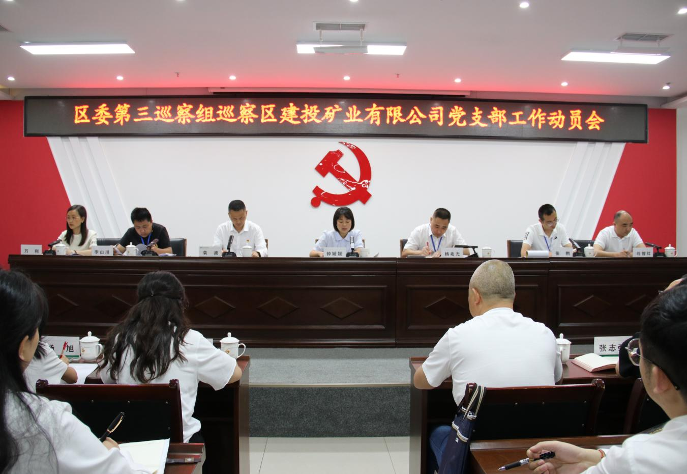 區委組織部、區紀委監委駐財政局紀檢監察組相關領導、區委第三巡察組相關人員、區建投礦業有限公司全體班子成員參加會議,區建投礦業有限公司全體干部職工列席會議。
